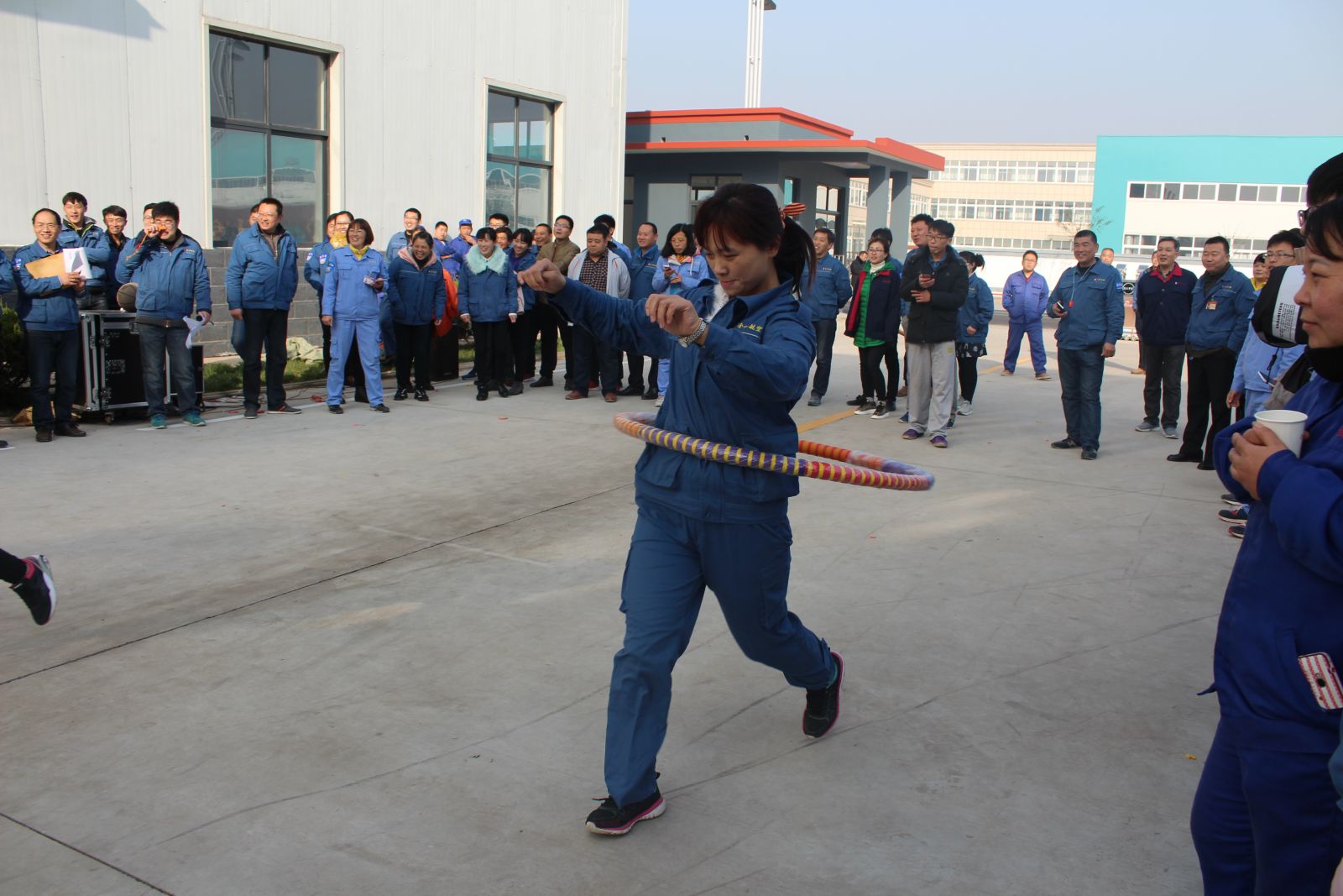 今天公司特地為大家安排了拔河比賽、齊心跳大繩、袋鼠跳、托乒乓球接力賽、背球接力賽、呼啦圈競走、綁腿賽跑共計(jì)七項(xiàng)豐富多彩的文體盛宴。