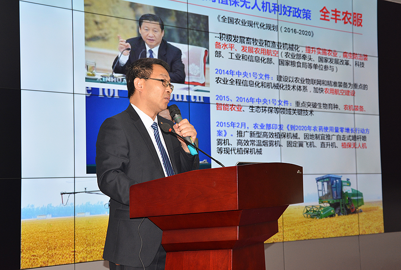 安陽(yáng)全豐航空植??偨?jīng)理周國(guó)強(qiáng),做了《淺談我國(guó)植保無(wú)人機(jī)的現(xiàn)狀與應(yīng)用》主題匯報(bào),系統(tǒng)介紹了我國(guó)航空植保產(chǎn)業(yè)的發(fā)展現(xiàn)狀、植保無(wú)人機(jī)的應(yīng)用情況、以及對(duì)我國(guó)航空植保行業(yè)發(fā)展前景的展望。