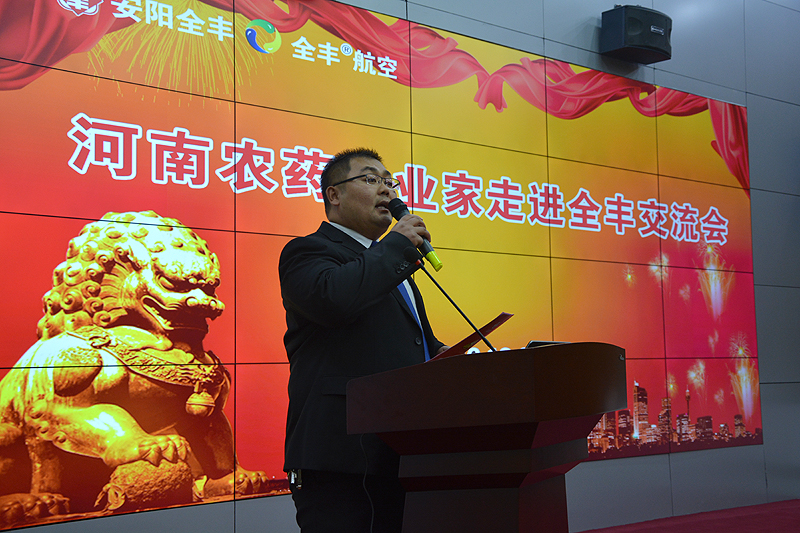 交流會(huì)由安陽(yáng)全豐經(jīng)營(yíng)副總張曉林主持。會(huì)議開(kāi)場(chǎng)由安陽(yáng)市農(nóng)業(yè)局副局長(zhǎng)朱麗英女士致辭,歡迎來(lái)自河南省農(nóng)藥行業(yè)的企業(yè)家們來(lái)到古都安陽(yáng),并先后介紹了安陽(yáng)市農(nóng)業(yè)發(fā)展?fàn)顩r,以及全豐生物科技大力發(fā)展航空植保統(tǒng)防統(tǒng)治取得的顯著成效。