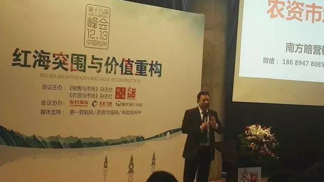 南方略營銷咨詢公司劉祖軻報(bào)告題目《農(nóng)資市場(chǎng)與紅海突圍之路》,他提出紅海突圍應(yīng)該朝著提升消費(fèi)者的幸福指數(shù);降低種植戶痛苦指數(shù),從賺種植戶的錢到幫種植戶賺錢;提升經(jīng)銷商創(chuàng)富指數(shù),為客戶提升價(jià)值三個(gè)方向發(fā)展。