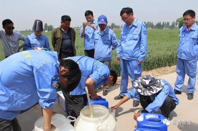 藥劑督察組是流動的工作狀態(tài),來到第二個作業(yè)點,飛機(jī)正在等藥,小組成員們直接下地勘察病情,烈日下,大家沒有一個人叫苦叫累。一番調(diào)查之后發(fā)現(xiàn)這里的小麥病情較輕,但是也有條銹病和赤霉病的發(fā)生。當(dāng)老鄉(xiāng)把水和藥品拉到作業(yè)現(xiàn)場,督察組嚴(yán)格按照作業(yè)標(biāo)準(zhǔn)監(jiān)督作業(yè)小組配藥,并對作業(yè)過程中不標(biāo)準(zhǔn)的地方提出指導(dǎo),督察小組的意義是不能因為一味的追求作業(yè)效率而忽略質(zhì)量,工作就是相鋪相成的。